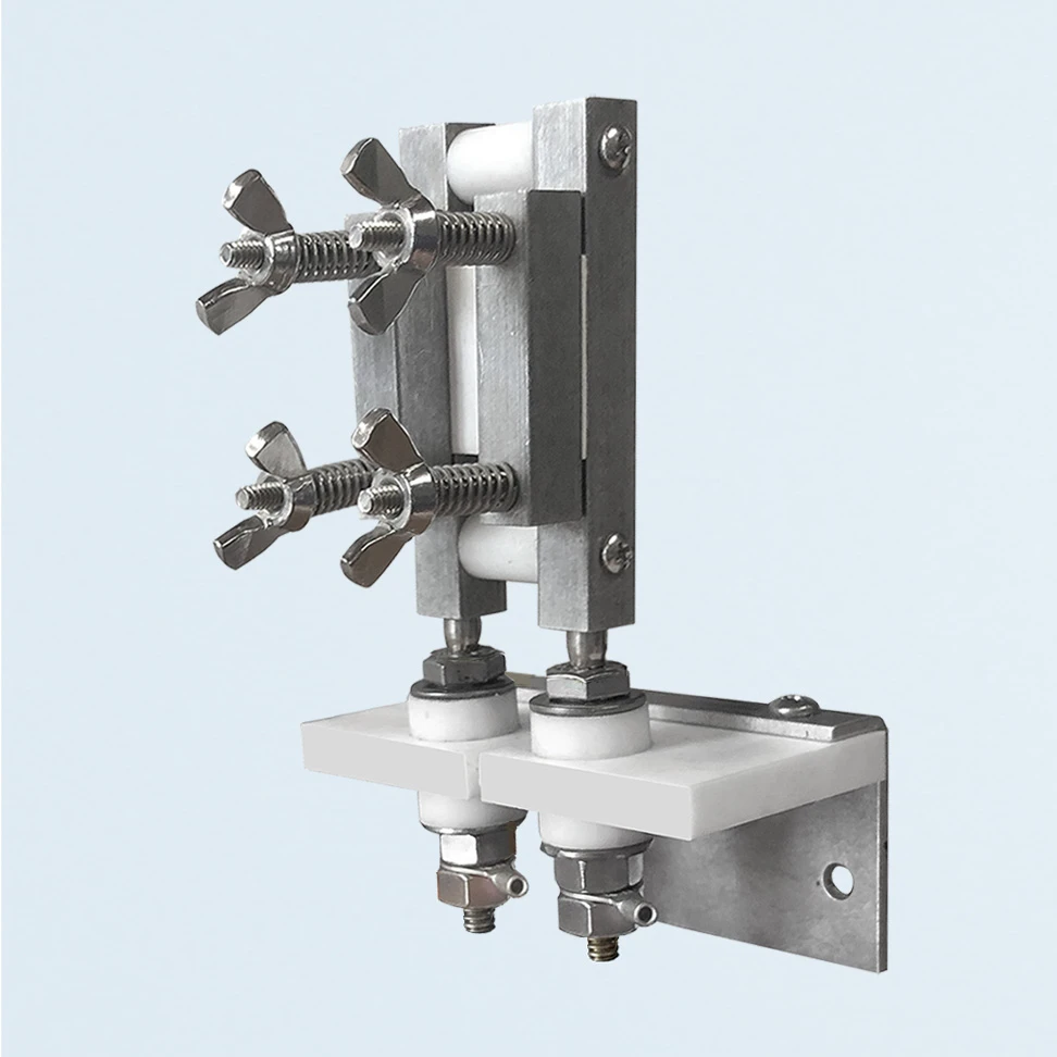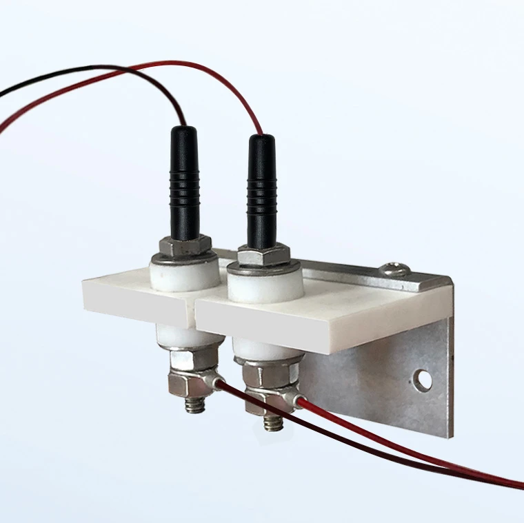 An angle connector is also necessary to mount the EMC holder onto the kiln wall and to make the connection to the in-kiln wiring. The two 4mm banana plugs from the EMC holder fit into the angle connector from one side. On the other side, cables are connected going to the switchbox of the in-kiln monitor or to the measuring box for the kiln control system.