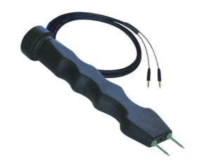 - Insulated pins EG and EL: The shanks of the pins are teflon-coated to measure only at the tip, which allows pin-pointing moisture measurements to a defined depth. Using teflon-coated pins is also important when measuring dry materials behind wet surfaces. Moisture on a wet surface is never picked up, even if the pins are pushed all the way into the material, because the pins are teflon-coated up to the base of the electrode.
