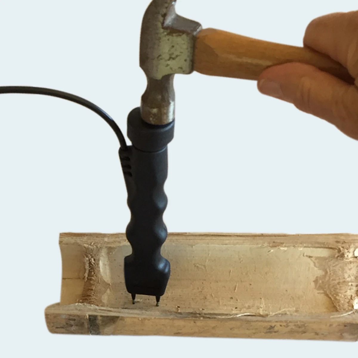 - The ergonomically designed Electrode E14 fits perfectly into your hand and gives you a comfortable grip when measuring. The pins can be pushed into material by hand, or hammered into the material by using a hammer. Even if the material is hard and tough to penetrate, the E14 with EG pins is made strong enough to withstand hard pounding. Can be used for measuring hard wood, exterior and interior wall boards, panel products, cementitious panels even concrete.