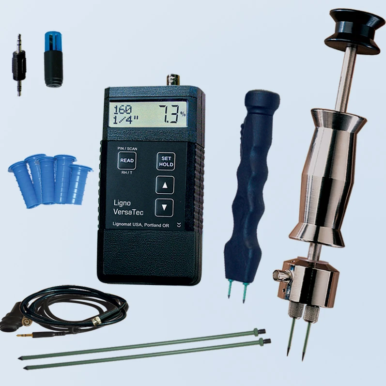 The Package RH-KS consists of the LignoTec RH, RH BluePeg probe, RH-CC cable, 10 RH Sleeves and cleaning brush and a carrying case (pouch is also available). The Ligno-Tec RH was designed for reliability and accuracy as well as sturdiness and ease of operation. The instruments have proven to perform well in rough mill environments with day-to-day usage.