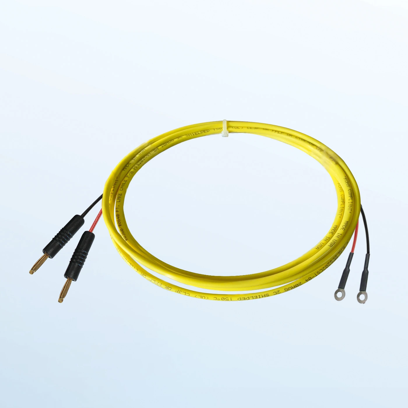 The LP-H cables have two 4mm banana plugs on one end and two loops on the other end.