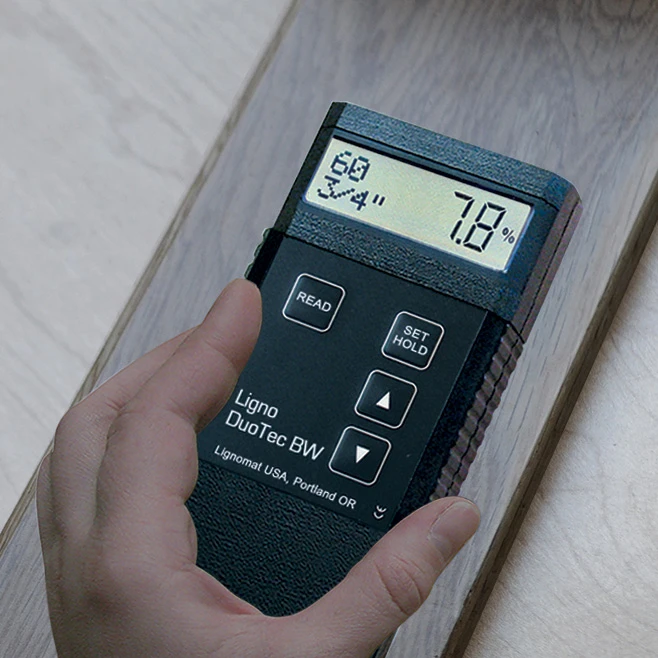 A pinless advantage: Pinless meters from Lignomat measure lower moisture contents than pin meters. A feature specifically valued by the flooring industry in areas with low relative humidity and high desert climate zones. Which makes this a great flooring installer moisture meter.
