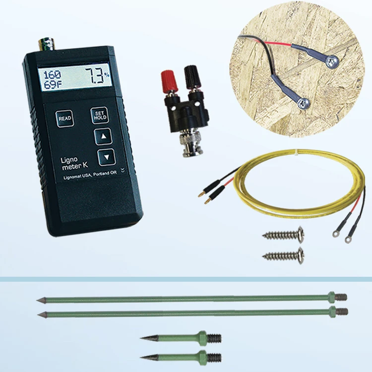 The Ligno-meter K is the most advanced meter among Lignomat’s pin moisture meters. Features are the wide moisture range and more than 170 correction settings for measuring domestic and tropical wood species, OSB and other panel products, bamboo, gypsum and different types of wall boards. Relative scales are included for concrete, cementitious materials, plastics, insulation…