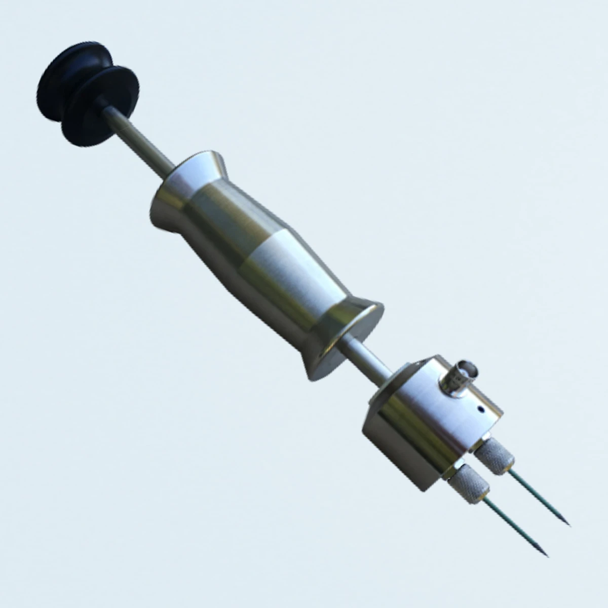 Electrode E12: The E12 is designed to measure from the surface to 2″ deep (with DB pins). All E12 pins are insulated and measure only at the tip. The slide hammer helps inserting and removing the pins.