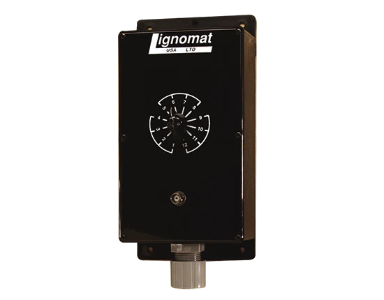 The switch box is installed outside the dry kiln and connected to the station plate by wires. The switch box is equipped with a BNC connector for the BNC cable from the Ligno-VersaTec and a 4 to 12 position dial to obtain measurements from the station plate.