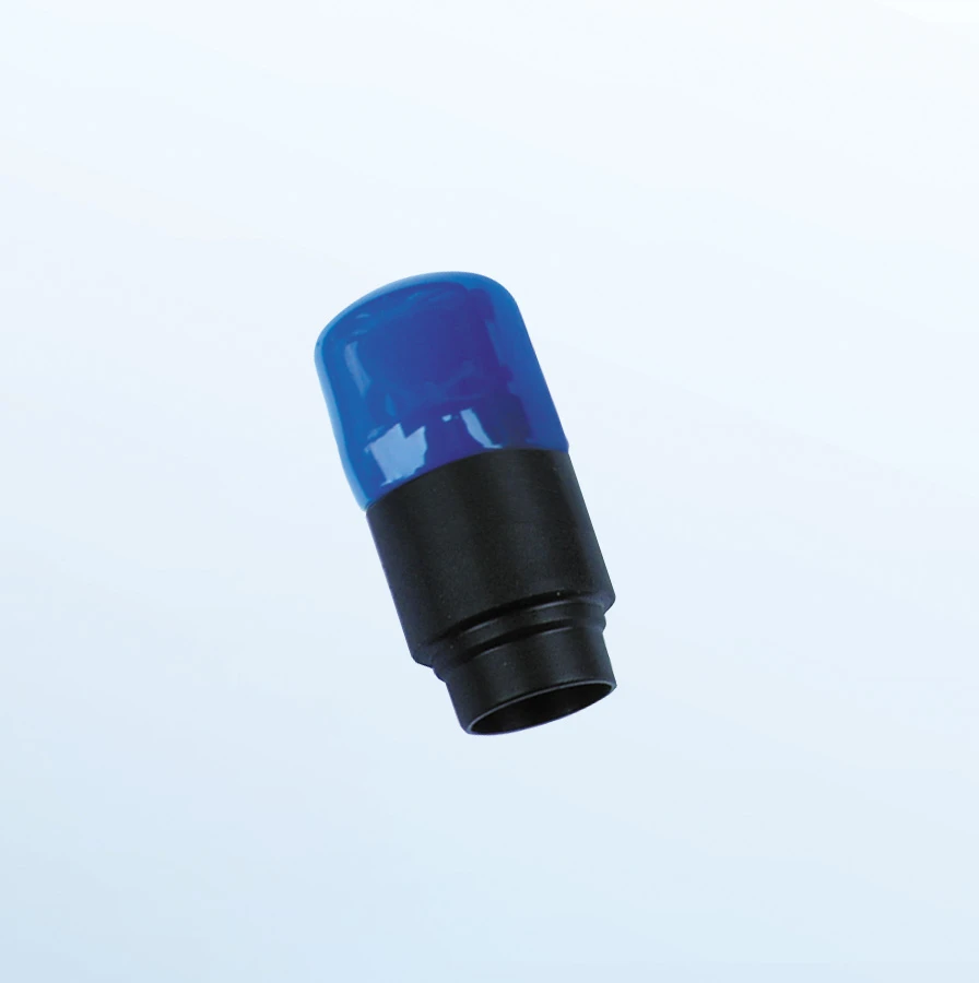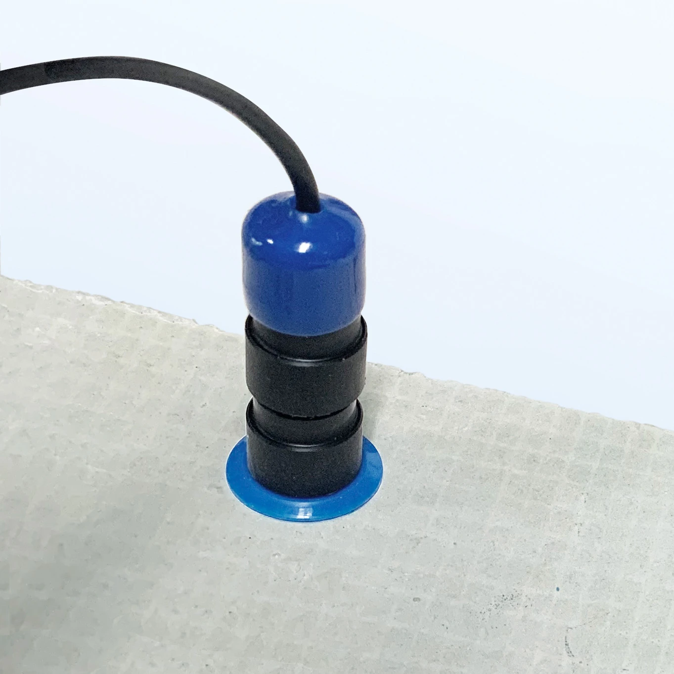 The top-extender consists of two pieces, a blue hood and a black cylinder. The blue hood is removed to obtain a measurement and has to be put back into place after the measurement is done. The concrete cable can be used in the black cylinder, the same way as it is used in the sleeve.