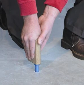 The Lignomat sleeves can be pressed into the hole by using your hands. Using a wooden block or a rubber mallet makes inserting the sleeves easy. The numerous ribs on the side of the sleeve and the lip on the top of the sleeve assure a tight fit, where no air from the hole can escape once the cap is in place.