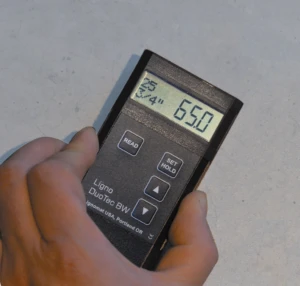 The Ligno-DuoTec BW is a dual-depth pinless meter for wood floors, bamboo, and gypsum. The meter in pinless mode also gives comparative readings of concrete and other materials (Photo 2).